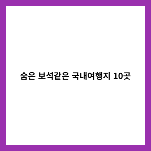 국내에도 아직 많이 알려지지 않은 숨은 보석 같은 여행지가 많습니다. 사람이 붐비지 않고, 자연과 함께 힐링할 수 있는 여행지를 찾고 있다면 이 글을 꼭 읽어보세요.