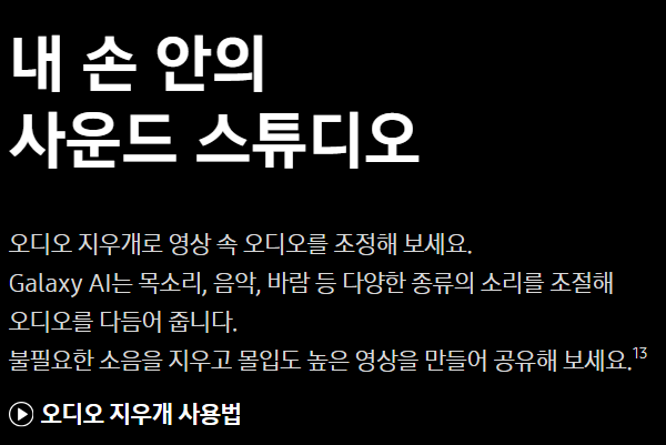 배경 소음이 신경 쓰인다면? 내장 사운드 스튜디오 기능으로 원하는 소리만 남기고 불필요한 노이즈를 제거할 수 있습니다. 이 모든 혁신은 사용자 중심으로 설계되어, 누구나 쉽게 프로급 비디오를 제작할 수 있게 해줍니다. “갤럭시 S25 Ultra 비디오 품질”로 검색해보시면, 이 기능의 놀라움을 직접 확인할 수 있을 거예요.