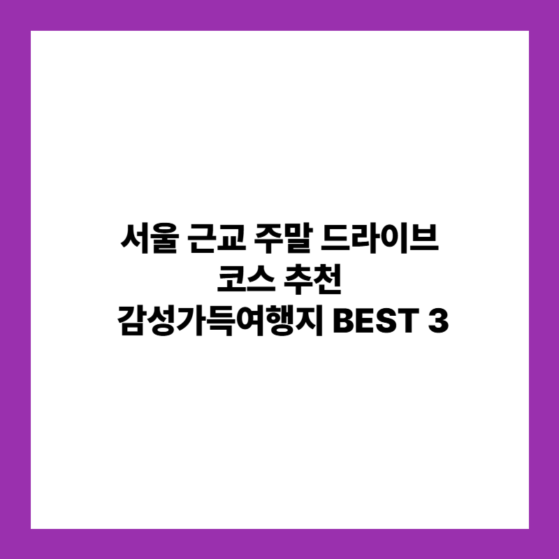 오늘은 서울 근교에서 당일치기로 다녀오기 좋은 주말 드라이브 명소 3곳을 상세하게 소개합니다.