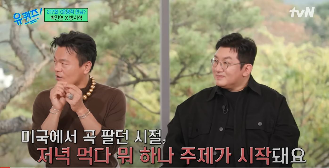 방송 중에 박진영과 방시혁이 만나게 된 스토리도 들려주었습니다.