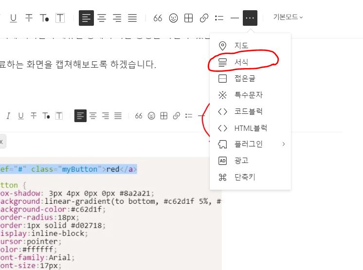 새로운 포스팅을 할 때 적당한 위치에 서식관리 메뉴를 통해서 버튼 생성을 하실 수 있습니다.