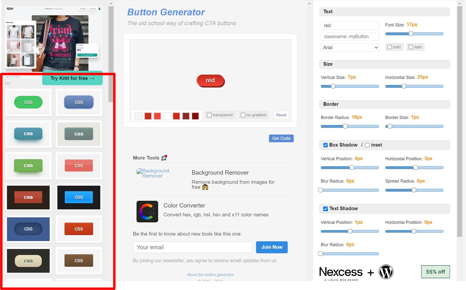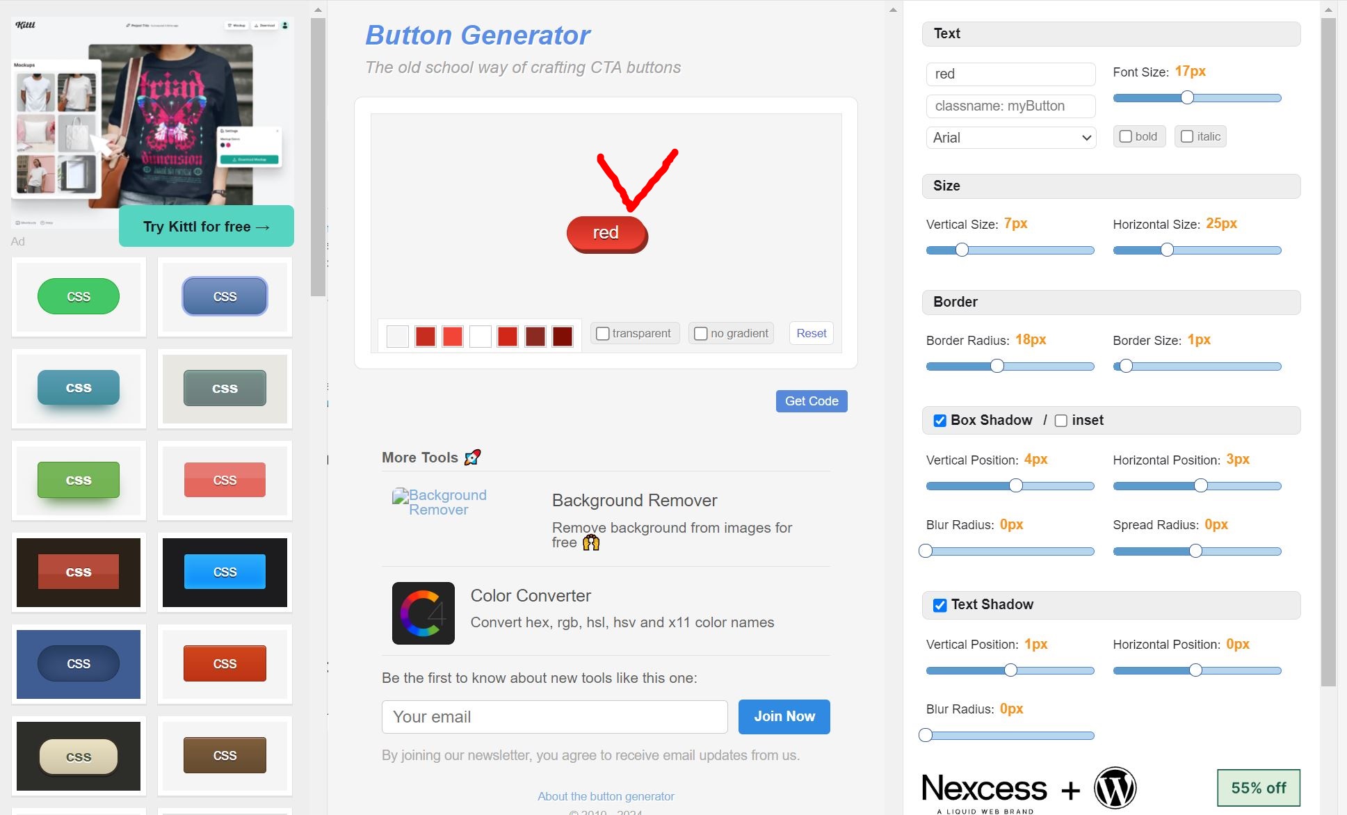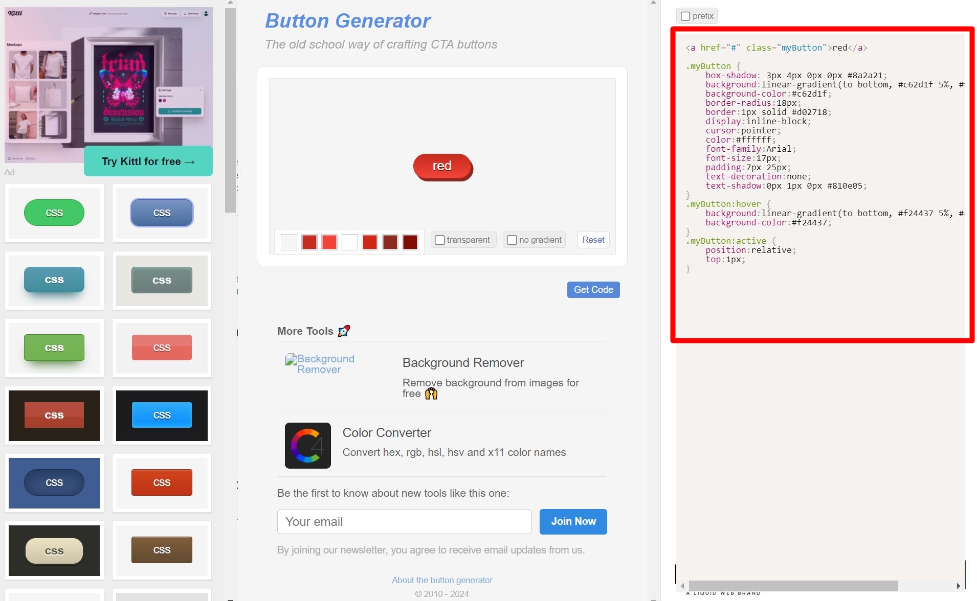 버튼을 만들기 위해 '버튼제너레이터' 싸이트를 이용하시면 정말 편합니다.