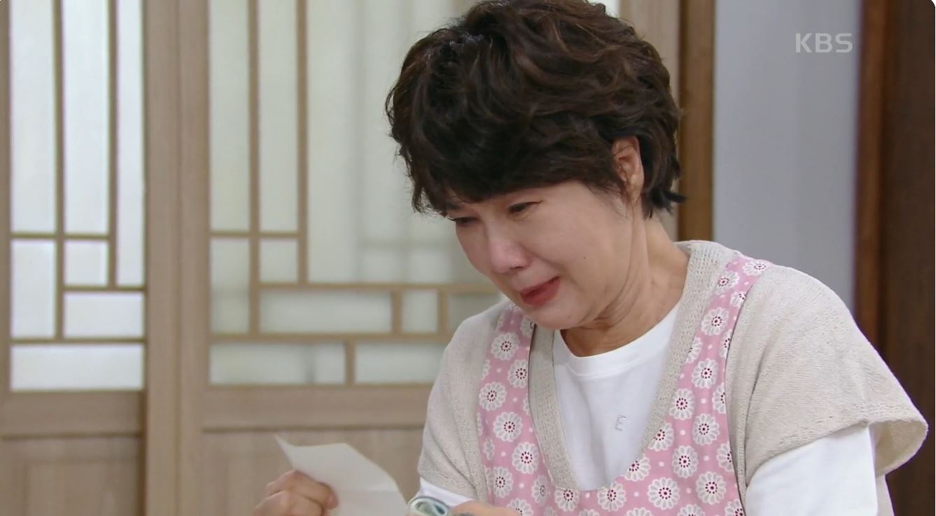 돈다발을 두고 간 엄마의 편지를 발견한 명자는 오열합니다.
