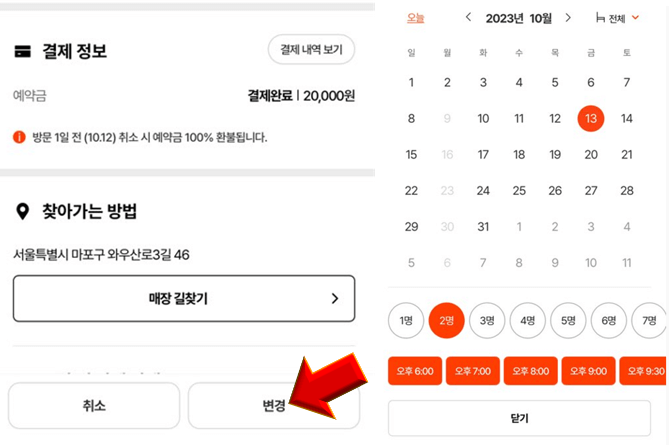 예약을 취소하거나 변경하고 싶을 때도 캐치테이블은 간편합니다.